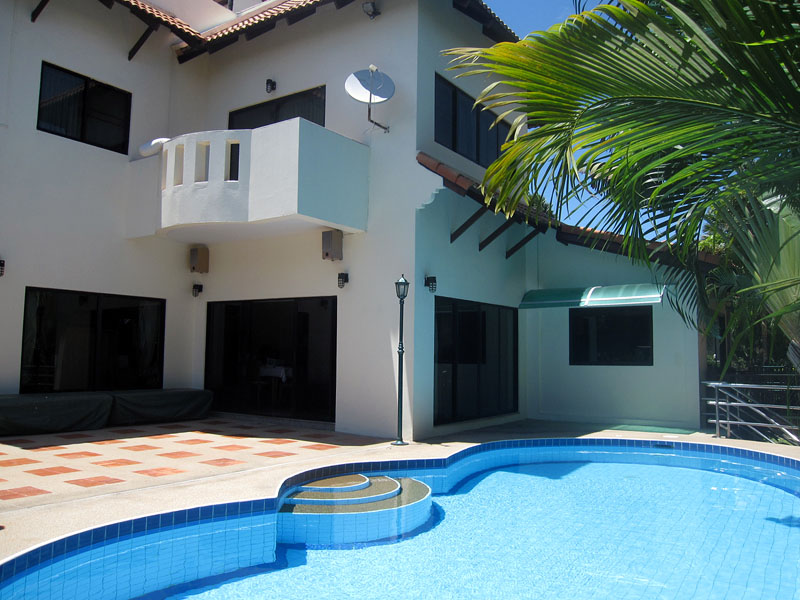 บ้านสำหรับขายใน่จอมเทียนตะวันออก - ห้วยใหญ่2 ชั้น 3 ห้องนอน 3 ห้องน้ำ พื้นที่ภายใน 300 ตารางเมตร พื้นที่ภายนอก 1452 ตารางเมตร พร้อมเฟอร์นิเจอร์ครบชุด ห้องครัวและอุปกรณ์ครบชุดสไตล์ยุโรป แอร์ ระเบียง ห้องแม่บ้าน สำนักงาน สระว่ายน้ำส่วนตัว สวนส่วนตัว โทรทัศน์ ทีวีดาวเทียม สเตอริโอไฮไฟ เตาประกอบอาหาร เตาไมโครเวฟ เครื่องซักผ้า แท็งค์น้ำ
